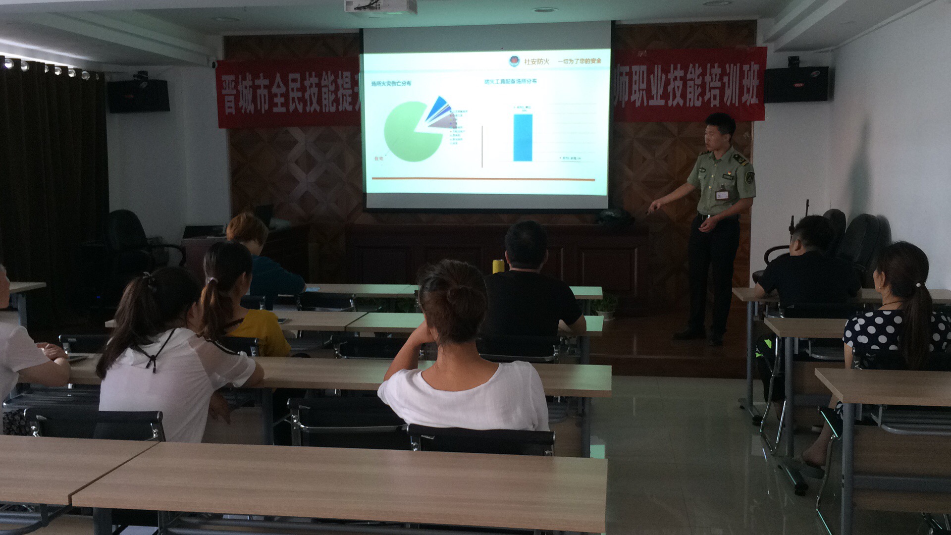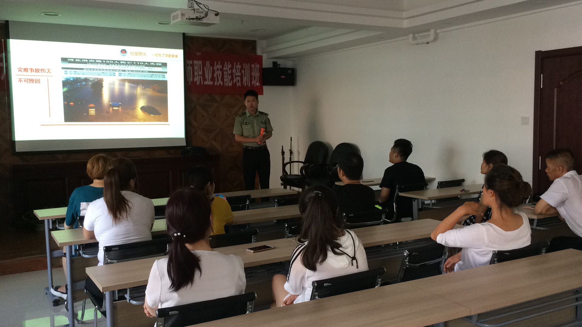 1、課堂上,教官通過(guò)強(qiáng)烈震撼的火災(zāi)圖片和視頻以及生動(dòng)的案例,讓員工詳細(xì)了解了火災(zāi)的危害。