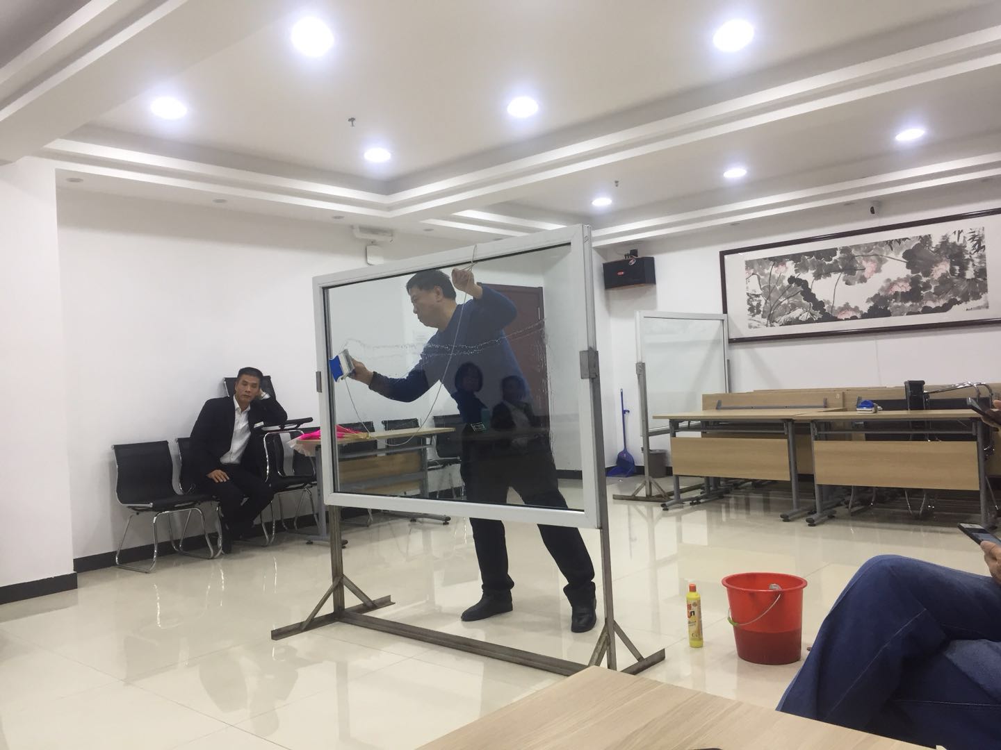 培訓學校孟老師在進行實操演示以及講解具體檫玻璃過程中應該注意的事項
