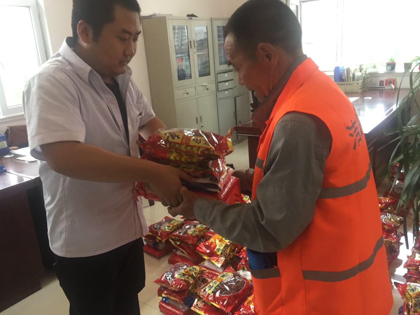 端午節(jié)來臨之際,為弘揚傳統(tǒng)文化,我公司按照傳統(tǒng)習(xí)俗為環(huán)衛(wèi)工準(zhǔn)備了節(jié)日禮品。濃濃棕香,綿綿情長。6月5日下午,在一年一度的端午佳節(jié)來臨之際,一袋袋香香的糯米、大大的紅棗、白糖、冰糖飽含著公司關(guān)愛和祝福的端陽節(jié)福利由公司領(lǐng)導(dǎo)親自發(fā)放到為美化城區(qū)大街小巷作出默默奉獻(xiàn)的公司環(huán)衛(wèi)工人手中。