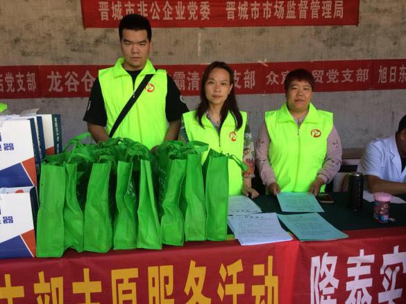 此次活動(dòng)由晉城市市場(chǎng)監(jiān)督管理局和市非公企業(yè)黨委領(lǐng)導(dǎo)帶隊(duì),非公黨委下屬的潔霸清潔、神利電器、隆泰實(shí)業(yè)、龍谷倉(cāng)等九個(gè)支部的黨員志愿者30余人參加,活動(dòng)旨在關(guān)愛弱勢(shì)群體,提供志愿服務(wù),弘揚(yáng)黨員志愿者精神,切實(shí)發(fā)揮文明單位的引領(lǐng)示范作用,送文化和健康下鄉(xiāng),助力晉城市扶貧攻堅(jiān)行動(dòng)。