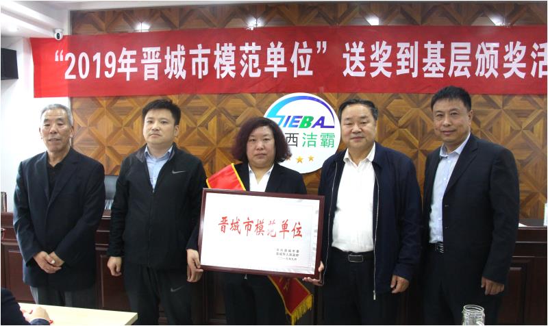 公司副總經(jīng)理史志霞首先介紹了公司的基本情況。隨后市總工會(huì)商貿(mào)工會(huì)主席張玉濤宣讀了晉城市潔霸清潔公司榮獲“2019年晉城市模范單位”批復(fù)表彰文件,市總工會(huì)副調(diào)研員刁忠孝向公司副總經(jīng)理史志霞授帶頒獎(jiǎng),并頒發(fā)了獲獎(jiǎng)榮譽(yù)證書(shū)。