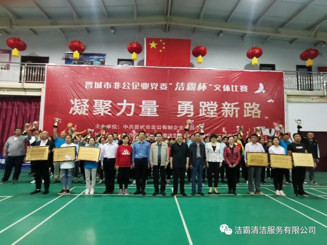 9月25日下午,晉城市非公企業(yè)黨委“潔霸杯”文體比賽落下帷幕。此次比賽由中共晉城市非公有制企業(yè)委員會(huì)主辦,中共晉城市潔霸清潔服務(wù)股份有限公司支部委員會(huì)冠名協(xié)辦。此次活動(dòng)的主題是“凝聚力量 勇蹚新路”,旨在新中國(guó)成立71周年之際,全面展示非公企業(yè)黨組織開展群眾性體育活動(dòng)的豐碩成果,以及廣大黨員干部創(chuàng)先爭(zhēng)優(yōu),奮發(fā)進(jìn)取,勇蹚新路,爭(zhēng)做時(shí)代先鋒的精神風(fēng)貌。