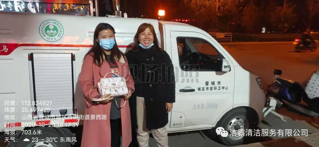 10月20日下午3點(diǎn)左右,晉城市潔霸清潔服務(wù)股份有限公司保潔部環(huán)衛(wèi)經(jīng)理李通和工人在城區(qū)南街街道景西路段進(jìn)行街道清洗作業(yè)時(shí),忽然看見晉城農(nóng)商銀行門前的綠化帶里有一個(gè)女士挎包,忙叫環(huán)衛(wèi)工人郭志云把挎包撿了起來。當(dāng)時(shí)就考慮到失主丟失挎包以后一定很著急,在同事的共同見證下他們打開挎包,經(jīng)過查看,發(fā)現(xiàn)挎包內(nèi)有一張王女士的身份證、社?般y行卡數(shù)張,還有結(jié)婚證、鑰匙、耳機(jī)、富士康工牌等物品。憑借富士康工牌上的工號(hào),他們給富士康打電話聯(lián)系到了失主,后由環(huán)衛(wèi)主管秦彩鳳將挎包交到失主手中。收到失而復(fù)得的挎包,王女士又驚又喜,感激萬分。