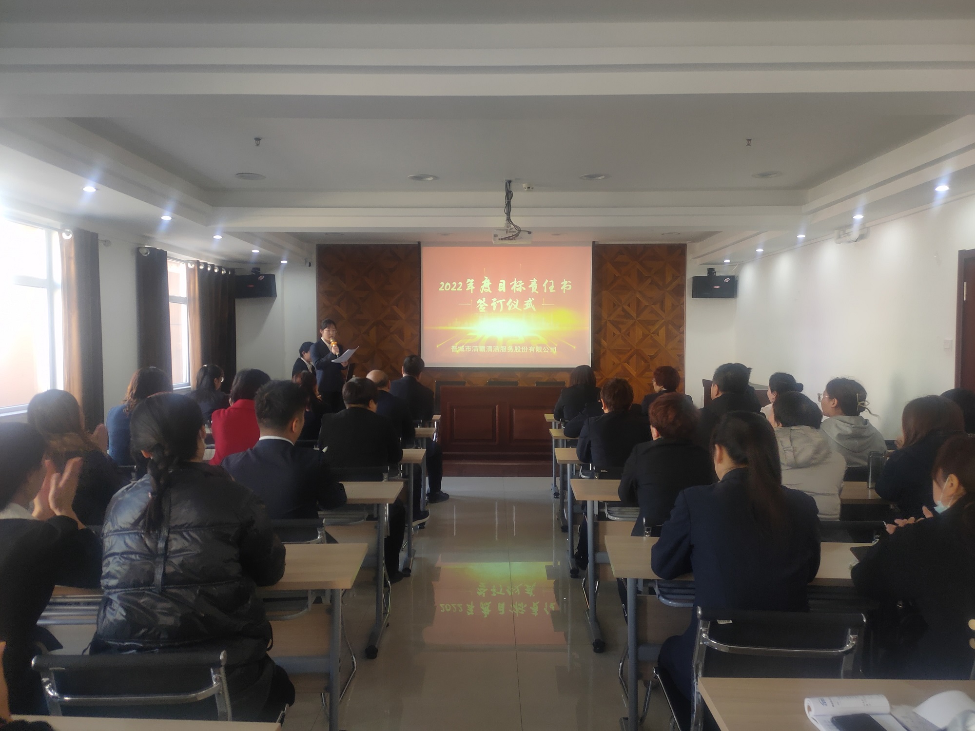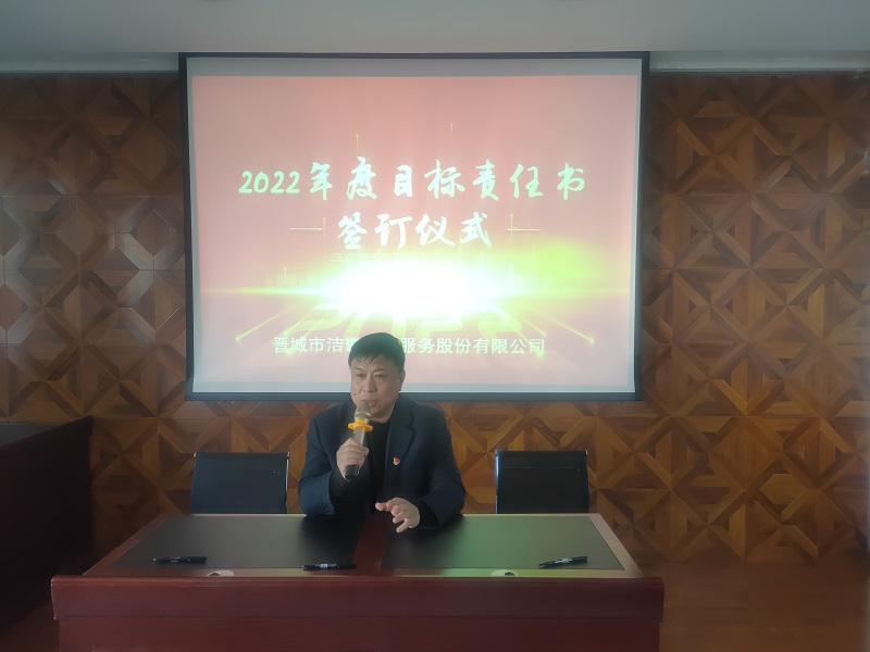 為落實(shí)公司2022年工作會(huì)議精神,進(jìn)一步壓實(shí)責(zé)任,確保年度工作目標(biāo)的順利完成, 3月1日下午,晉城市潔霸清潔服務(wù)股份有限公司在活動(dòng)中心組織召開(kāi)2022年度目標(biāo)責(zé)任書(shū)簽訂會(huì)議。公司黨支部書(shū)記、總經(jīng)理程晉軍,副總經(jīng)理張永智、史志霞,經(jīng)理助理,各子公司、分公司、部門(mén)經(jīng)理及項(xiàng)目負(fù)責(zé)人、主管等參加會(huì)議。