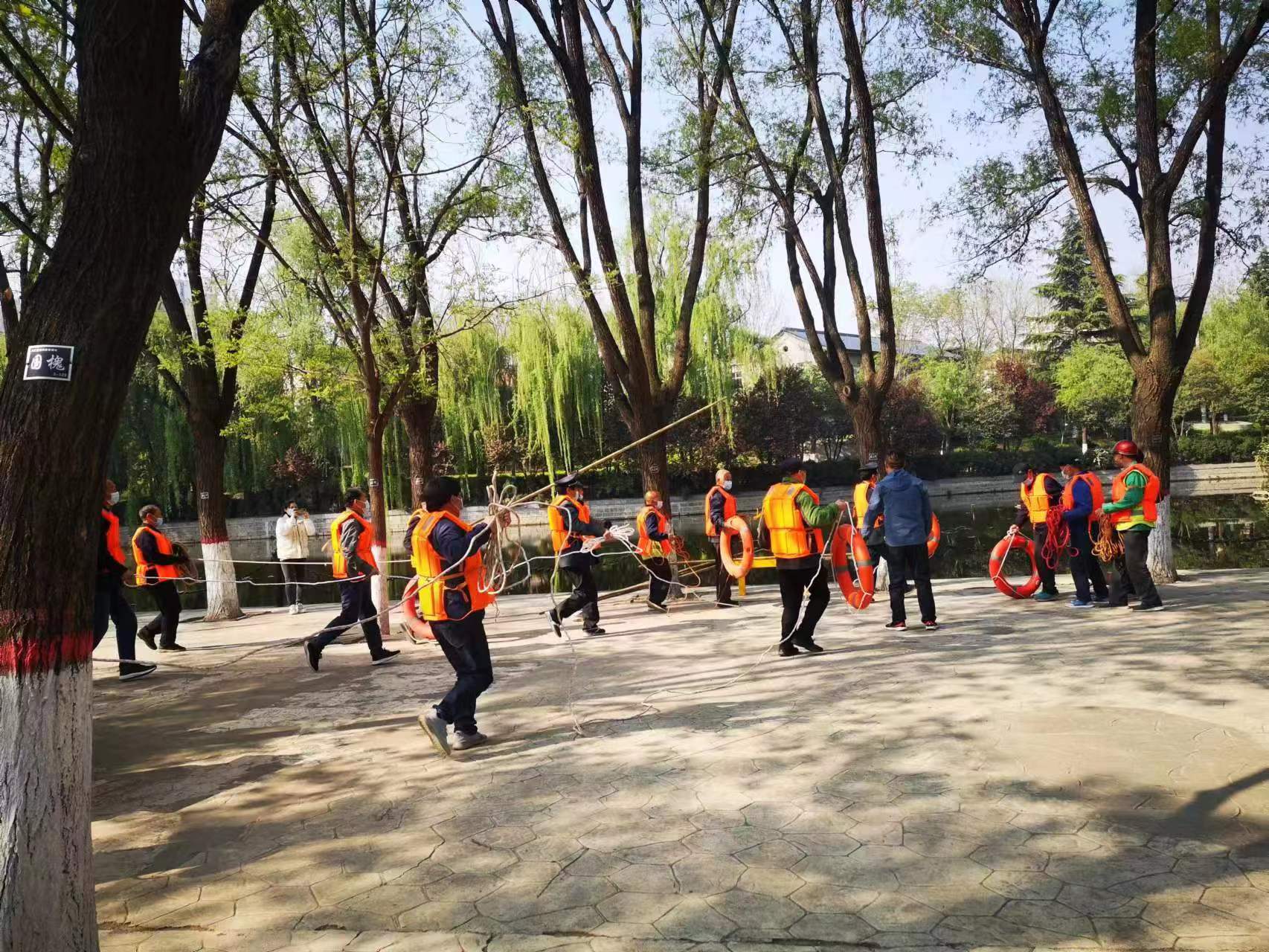 為進一步強化應(yīng)急預(yù)案保障措施的落實,提高管理人員和員工防汛搶險應(yīng)急反應(yīng)和處置能力,教育管理人員及員工如何正確、準確應(yīng)對極端天氣,迅速處理防汛突發(fā)事件,4月18日上午,合眾力公司景觀河道項目點在西秀園組織開展防汛搶險應(yīng)急演練。