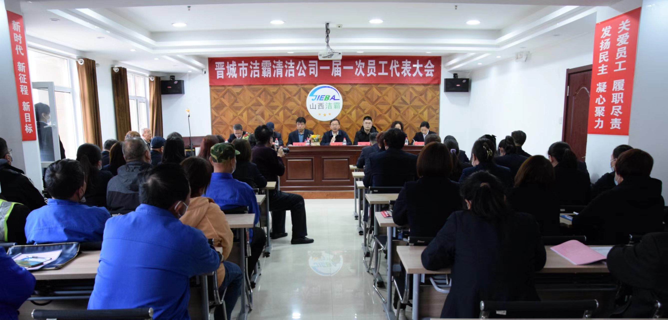 程晉軍在報(bào)告中指出,潔霸公司從1999年創(chuàng)建到今天,走過了二十多年發(fā)展歷程。二十多年來,潔霸公司從無到有,從小到大,由弱到強(qiáng),已形成擁有四家子公司、一家分公司、一所培訓(xùn)學(xué)校的規(guī)模。常年為200家單位提供保潔、園林、環(huán)衛(wèi)、物業(yè)、后勤勞務(wù)派遣等集洗業(yè)、餐飲多元服務(wù)中的型企業(yè);經(jīng)過二十多年的奮斗,公司現(xiàn)擁有固定辦公場(chǎng)所1500余平方米,固定資產(chǎn)達(dá)到2500萬元,流動(dòng)資金達(dá)到2000萬元,員工2500余人,年?duì)I業(yè)收入6500萬元,年上繳利稅200余萬元,成為晉城市由“清潔打掃”嬗變?yōu)椤凹艺䴓?biāo)桿”的品牌企業(yè);二十多年來,公司先后獲得山西省“雙強(qiáng)六好省級(jí)示范黨組織”、“山西省家政服務(wù)先進(jìn)單位”“山西省‘四新’中小企業(yè)”、晉城市委、市政府“模范單位”等榮譽(yù)稱號(hào);二十多年來,黨群工作不斷加強(qiáng),企業(yè)管理逐步升級(jí),經(jīng)濟(jì)效益穩(wěn)中向好,員工隊(duì)伍素質(zhì)得到提升,企業(yè)文化建設(shè)不斷推進(jìn),職工權(quán)益得到維護(hù),構(gòu)建和諧企業(yè)的步伐更加穩(wěn)健,規(guī);、集團(tuán)化發(fā)展的愿望正在努力實(shí)現(xiàn)。