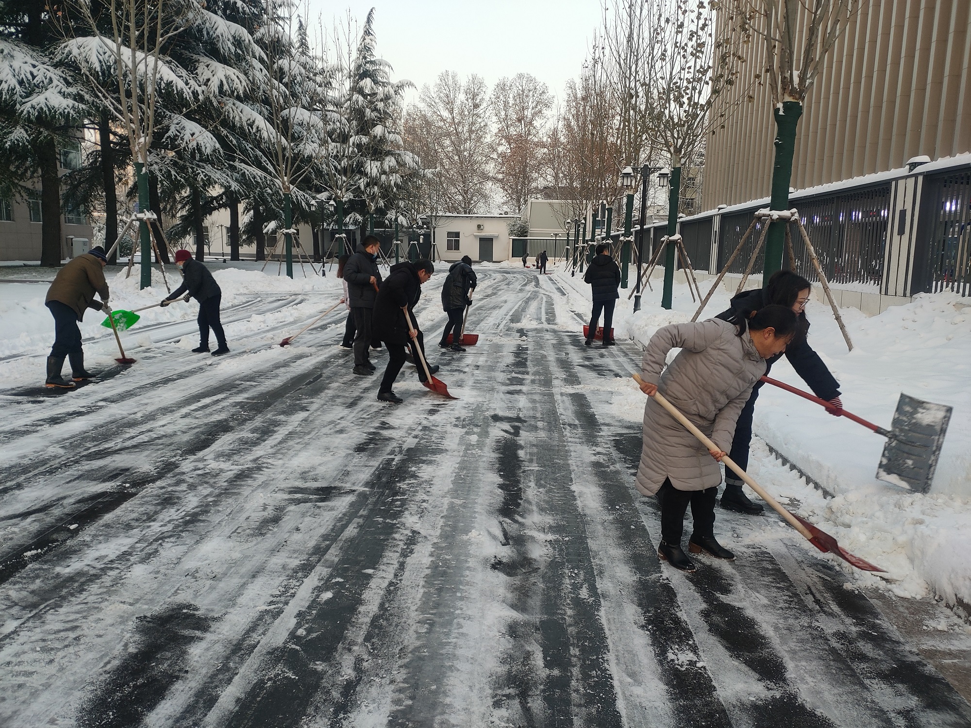 持續(xù)降雪,連續(xù)作業(yè)。16日晚,我市再次迎來降雪天氣。17日一大早,公司全體黨員和入黨積極分子又第一時(shí)間投入到市政府除冰雪的戰(zhàn)斗中,大家團(tuán)結(jié)協(xié)作,不畏嚴(yán)寒,確保了上午九點(diǎn)以前市政府院內(nèi)人員、車輛通行順暢。