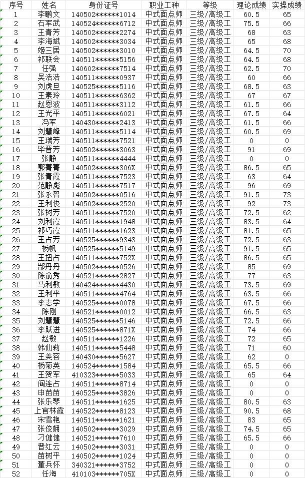 2024年6月29日第4批中式面點師高級認定人員成績公示