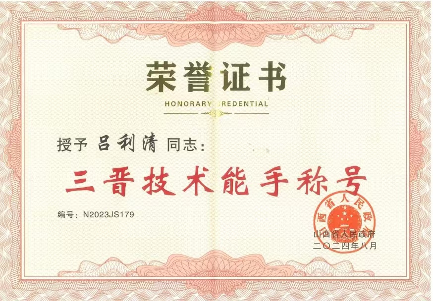 近日,山西省人民政府印發(fā)《關于授予2022—2023年度職業(yè)技能競賽優(yōu)秀選手“三晉技術能手”稱號的決定》,對2022—2023年度在省級以上職業(yè)技能競賽中取得優(yōu)異成績的517名選手予以表彰。其中,我公司呂利清榮獲“三晉技術能手”稱號。